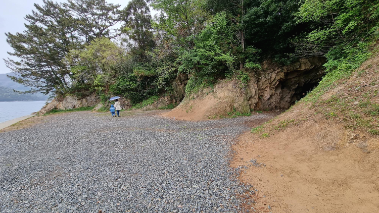 거제도 근포동굴, 저기 저쪽에 동굴이 보입니다. 하나, 둘, 셋 정도 보이네요.